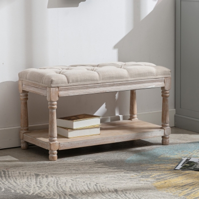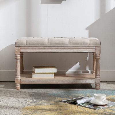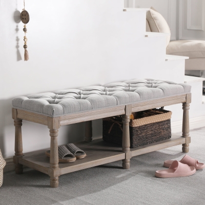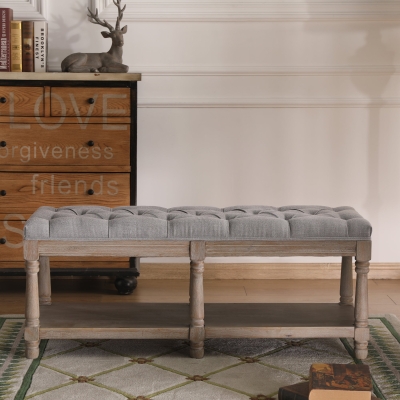 Mid Century Tufted Linen Upholstered Storage Bench - 2204BH