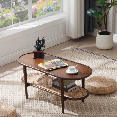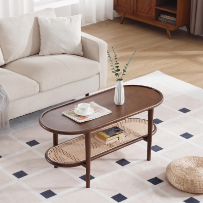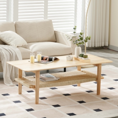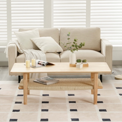 2-Tier Coffee Table with Natural Rattan Storage Shelf - 21793CT