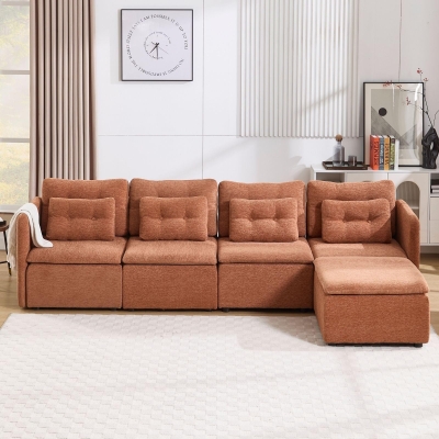 Chenille 56.5" Modular Sectional Sofa with Waist Pillow - 90041SF