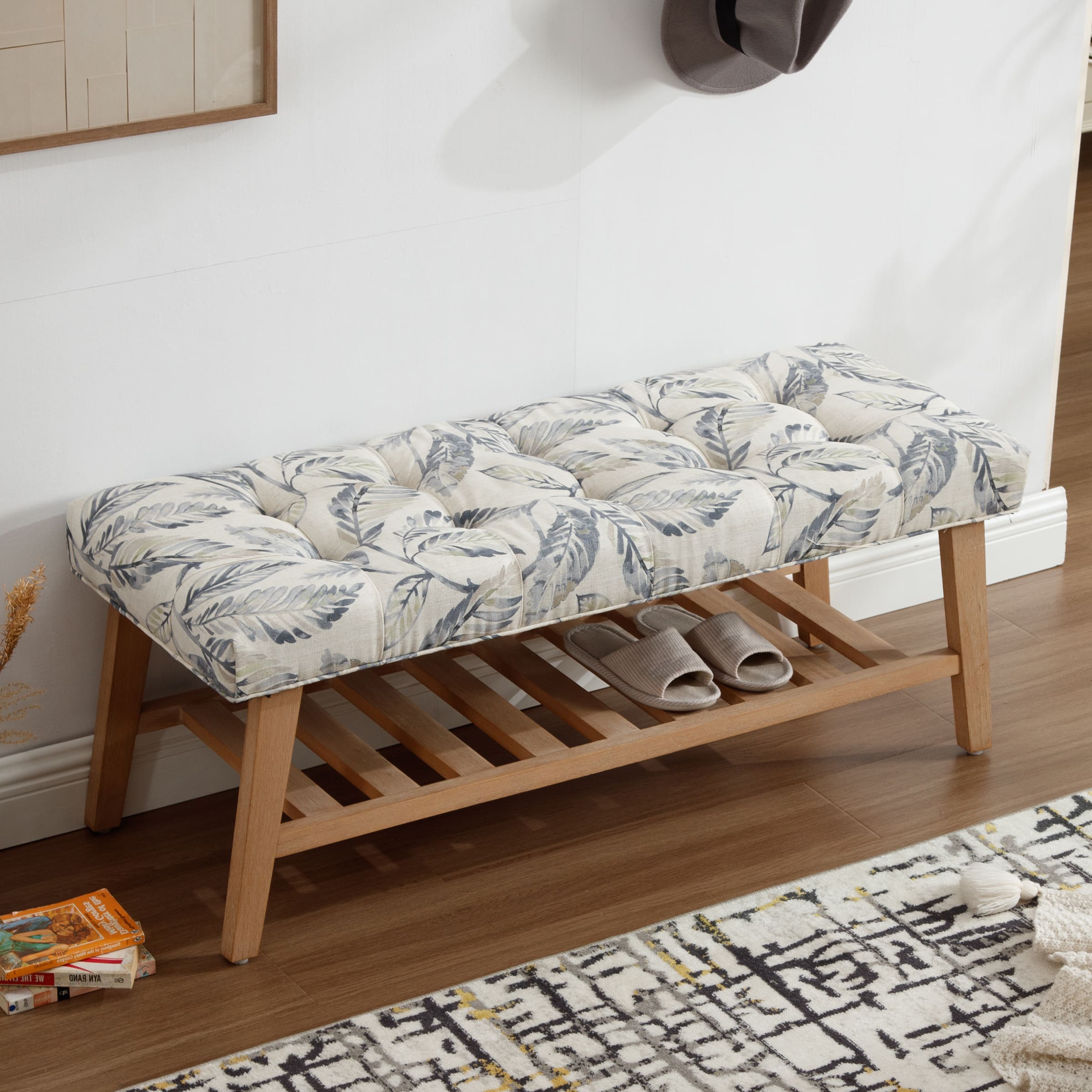 Tufted Upholstered Entryway Shoe Storage Bench - 2068BH